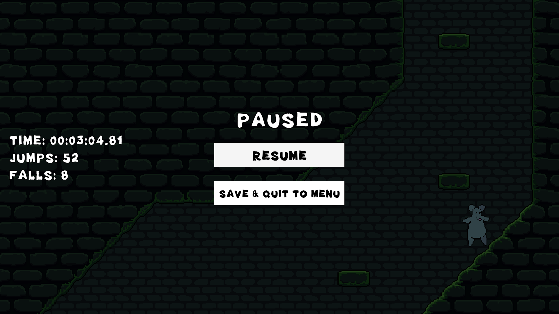 There is cheese in the sewers and you are a rat. You must climb up by jumping between platforms to reach the cheese. A short game inspired by Jump King.